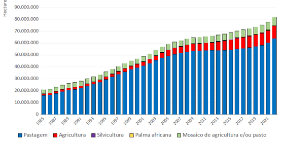 Figura 1 – Área de uso agropecuário na Amazônia sul-americana (1985-2022)