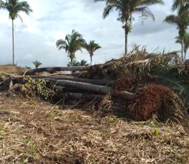 En el trabajo de campo presenciamos uno de los tantos casos donde los terratenientes ponen sus máquinas para deforestar las palmeras de babaçu para la creación de ganado y/o otros monocultivos (ver las Fotos 1 y 2). Cuando se derrumban las palmeras sin ningún criterio de manejo ecológico es muy duro para todos/as en la comunidad, y son las mujeres y hombres que ponen sus cuerpos para intentar frenar esa práctica que está naturalizada por los terratenientes desde hace décadas en la región. Según Janaina “existe una gran deforestación de palmeras, el terrateniente derribando las palmeras tanto en la comunidad de São João da Mata, como en la comunidad de Três Poços que hace parte de la ciudad de Lago dos Rodrigues”, siendo que las mujeres del MIQCB, junto con las organizaciones comunitarias y el sindicato están intentando registrar y denunciar esos casos.