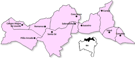 No Sertão do São Francisco (Figura 1), os agricultores familiares foram representados por 24 agricultores de 3 (três) comunidades, as quais estão localizadas nos municípios de Casa Nova e Curaçá (Comunidade Quilombola Nova Jatobá; Assentamento Rural Novo Horizonte; e Comunidade Quilombola do Distrito de Lagoinha). Estes interlocutores vivem em áreas aplainadas, cuja locomoção, apesar da distância relativa até Juazeiro (aproximadamente 100 km), município-sede do TI, é facilitada pela rodovia asfaltada.